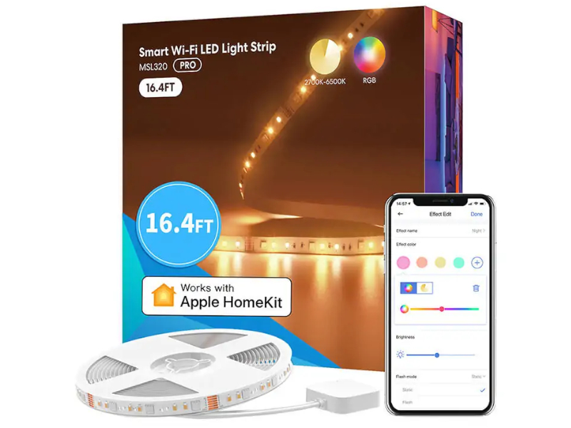 Taśma LED Meross MSL320 o długości 5 m jest bardzo łatwa w montażu i pięknie ozdobi każde Twoje pomieszczenie. Możesz wybierać spośród różnych kolorów światła lub wykorzystać dostępne scenerie za pomocą specjalnej aplikacji Meross lub Apple Home. Dodatkowo możesz ustawić pracę urządzenia i zmienić jasność oraz temperaturę barwową, aby dostosować ją w zależności od swojego nastroju. Listwą LED możesz ssterować także głosowo, ponieważ jest w pełni kompatybilna z Apple HomeKit, Amazon Alexa, Google Assistant i SmartThings.