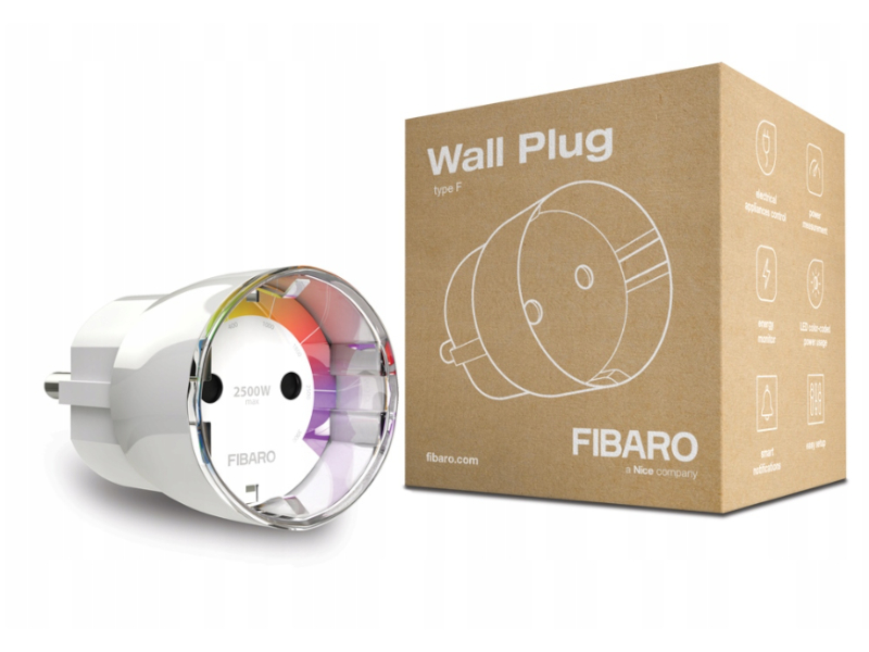 FIBARO Wall Plug jest zdalnie sterowanym inteligentnym włącznikiem sprzętów elektrycznych z funkcją pomiaru zużytej energii. Posiada pierścień LED, który wskazuje w czasie rzeczywistym pobór energii oraz alarmy w systemie. Te niezwykle funkcjonalne urządzeniew formie przejściówki podłączonej bezpośrednio do dowolnego gniazda zasilającego, znajdzie zastosowanie wszędzie tam, gdzie chcesz w wygodny sposób zdalnie zarządzać urządzeniami elektrycznymi. Ten moduł nie wymaga żadnego montażu, posiadania jakichkolwiek narzędzi oraz specjalistycznej wiedzy. Wystarczy wyjąć go z pudełka, włożyć do gniazdka elektrycznego i wpiąć do niego dowolne urządzenie elektryczne. Dodatkowo przejrzysty i czytelny interfejs systemu FIBARO pozwala na intuicyjne dodanie dowolnych modułów systemu inteligentnej automatyki dudynkowej.