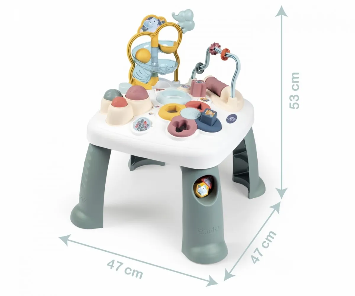 Little Smoby to marka zabawek dla niemowląt od renomowanego, francuskiego producenta zabawek Smoby, który od 1924 roku dostarcza wytrzymałe zabawki, które posłużą na lata, odpowiedzialnie wspierają zdrowy rozwój dzieci. Kolekcję Little Smoby wyróżnia stonowana kolorystyka, która działa wyciszająco na układ nerwowy najmłodszych dzieci. Interaktywny stolik od Little Smoby posiada liczne funkcje zapewniające dzieciom ekscytujące przygody podczas zabawy. Wygodne siedzenie zapewnia podparcie oraz pozwala dziecku obserwować otoczenie i z entuzjazmem reagować na nie. Uwagę zawraca estetyczne wykonanie i modne kolory, które będą pasować do wystroju wnętrza każdego pokoiku dziecięcego. Ponadto zaokrąglone kształty i liczne opcje zabawy gwarantują bezpieczną i kojącą zabawę.
