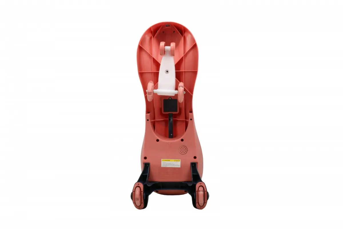 - Dodatkową atrakcją z jazdy są swiecące koła.Posiada wyprofilowane siedzisko z delikatnym podwyższeniem, które sprawia, że dziecko nie wyślizgnie się z niego podczas jazdy.