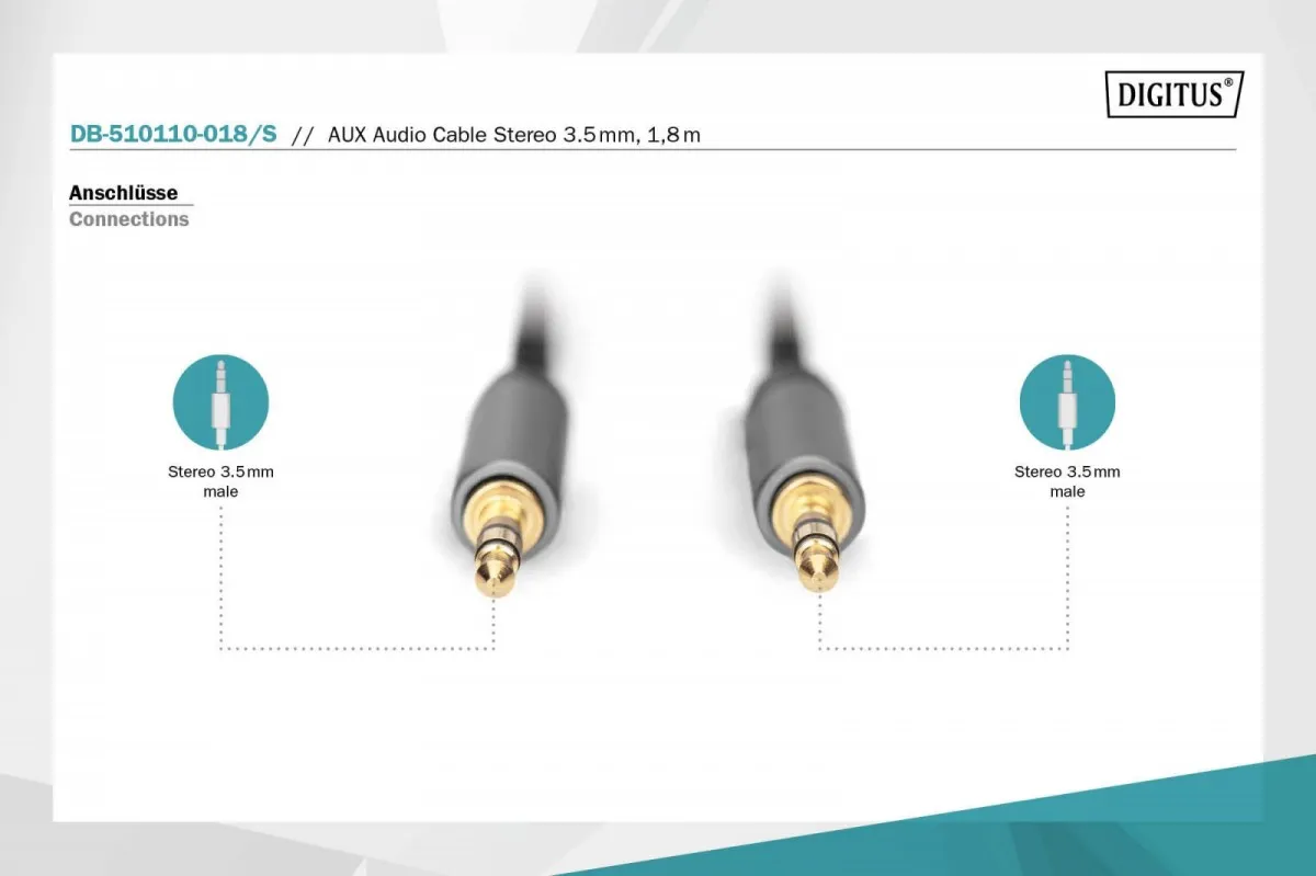 Kabel aux/mini jack z wtykami mini jack 3,5 mm (męski/męski) przesyła sygnał dźwiękowy w doskonałej jakości do słuchawek, zestawów słuchawkowych lub głośników z telefonów komórkowych, komputerów, odtwarzaczy MP3, radia samochodowego i innych urządzeń ze złączem aux 3,5 mm. Pozłacane styki zapewniają najwyższą jakość transmisji i idealną transmisję dźwięku.
