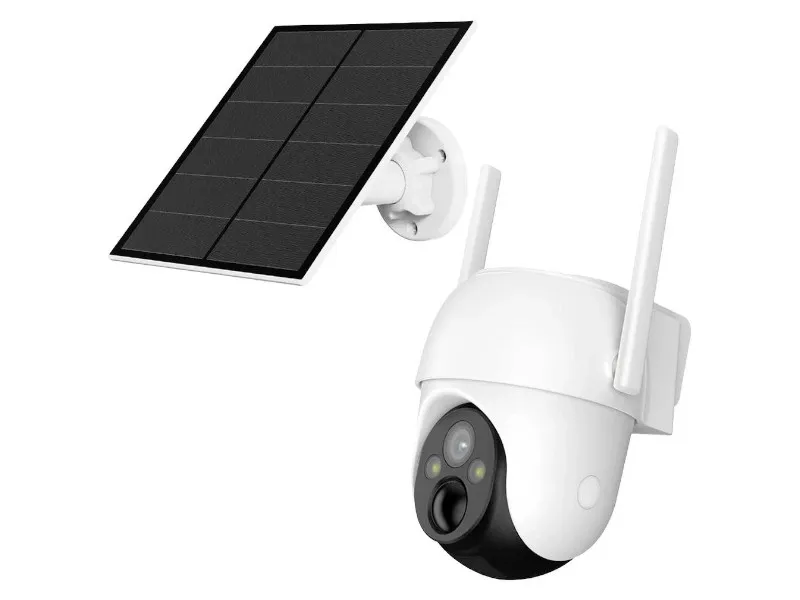 Dwukierunkowy dźwięk (półdupleks) Wykrywanie ludzi Funkcja obrotu Odporność na warunki atmosferyczne IP65 Czas pracy: 1,5-2 miesiące (różni się w zależności od ustawień, sposobu użytkowania i temperatury) Wsparcie zasilane przez panel słoneczny |