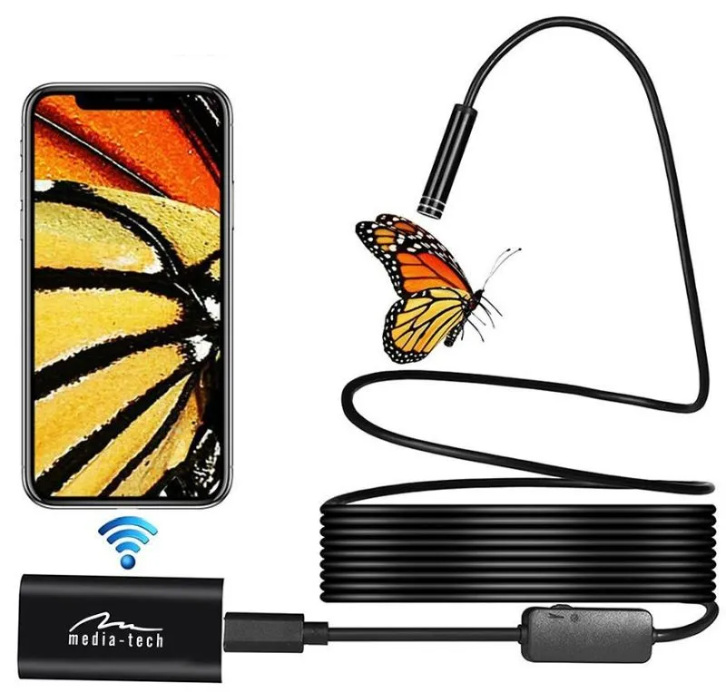 Uniwersalny endoskop inspekcyjny WIFI MT4099 sprawdzi się w trudnodostępnych miejscach takich jak rury kanalizacyjne, przewody wentylacyjne, wnętrza maszyn, silników, pojazdów itp. Bezprzewodowa transmisja WIFI umożliwia przesyłanie obrazu (zasięg do 30m) na urządzenia mobilne (Windows 7/8/10 32-64bit, Android od 5.x, iOS).