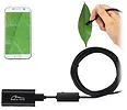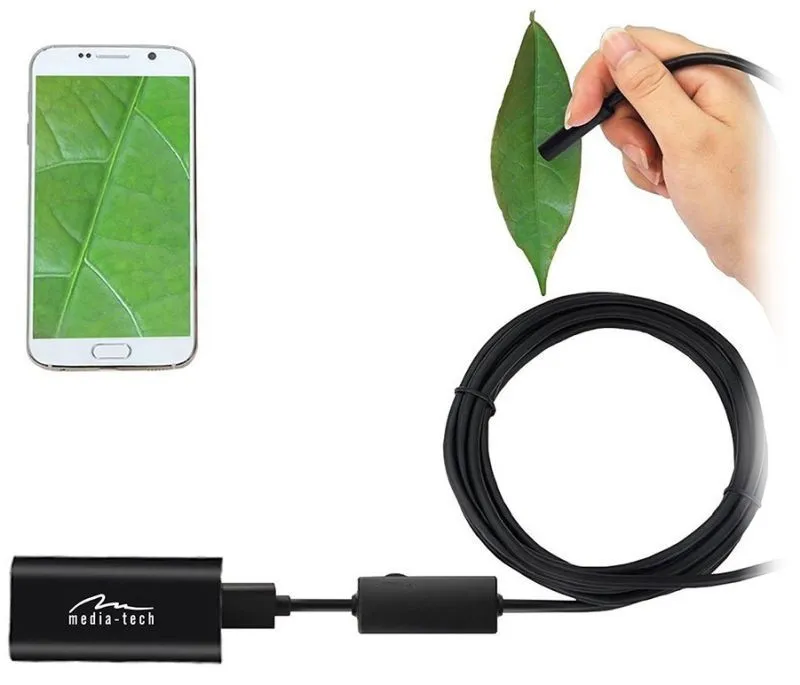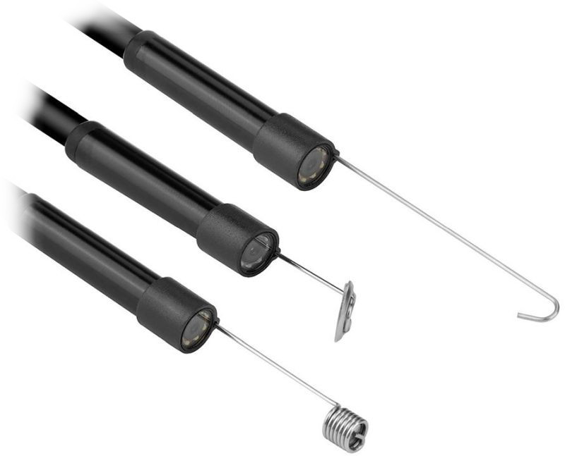 Długi (5m) i elastyczny kabel połączeniowy, pozwoli wprowadzić niewielką kamerę inspekcyjną (8mm) w trudnodostępne miejsce w celu uzyskania obrazu na monitorze komputera lub ekranie smartfona. Dla lepszego efektu podglądu, kamera została wyposażona w 6 jasnych diod LED z regulacją jasności na kablu. Do sondy można zamontować dodatkowe akcesoria takie jak: lustro, haczyk oraz magnes.