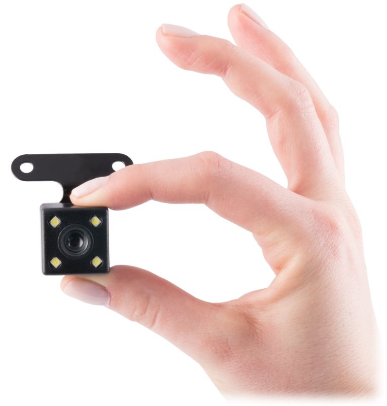 Tylna kamera odporna na czynniki atmosferyczne z wbudowanymi diodami LED. Może być zainstalowana zarówno na zewnątrz samochodu, np. obok tablicy rejestracyjnej, jak i wewnątrz przy tylnej szybie. Po włączeniu biegu wstecznego następuje automatyczne uruchomienie kamery cofania poprzez wykrycie napięcia w światłach cofania. Wówczas w lusterku na pełnym obszarze wyświetlacza pokazywany jest obraz z tyłu samochodu, ułatwiając manewrowanie.