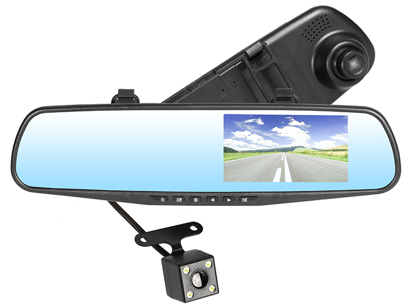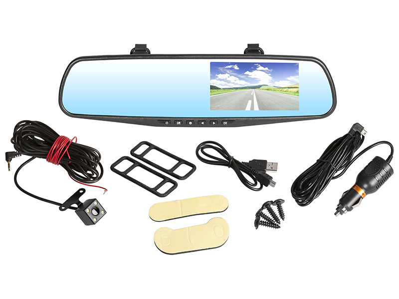 Kamera samochodowa TRACER MobiMirror FHD to wideorejestrator obsugujący dwie kamery. Przednia obsługuje maksymalnie rozdzielczość 1920*1280 pzy 25 klatkach na sekundę, zaś podgląd na tylną szybę na tylnej kamery jest możliwy w rozdzielczości 640*480 w 25 klatkach na sekundę. Przednia kamera nagrywa obraz o szerokości 170 stopni, natomiast tylna - 120 stopni. Urządzenie ma wbudowaną baterię, która podtrzymuje ustawienia w każdej nieprzyjemnej sytuacji drogowej. Dla ułatwienia i wygody użytkownika, zastosowano wyświetlacz TFT LCD 4.3".