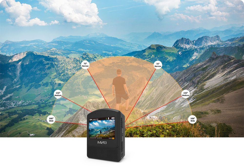Nowością jest wykonywanie zdjęć w trybie FISHEYE. Aby osiągnąć najwyższą fotograficzną perspektywę obiektywu, średnica soczewki kamery M20 jest niezwykle krótka i ma wystający wypukły kształt. Model umożliwia również zmianę kąta widzenia kamery. Użytkownik może ustawić opcję pomiędzy szerokim, normalnym i wąskim kątem widzenia.