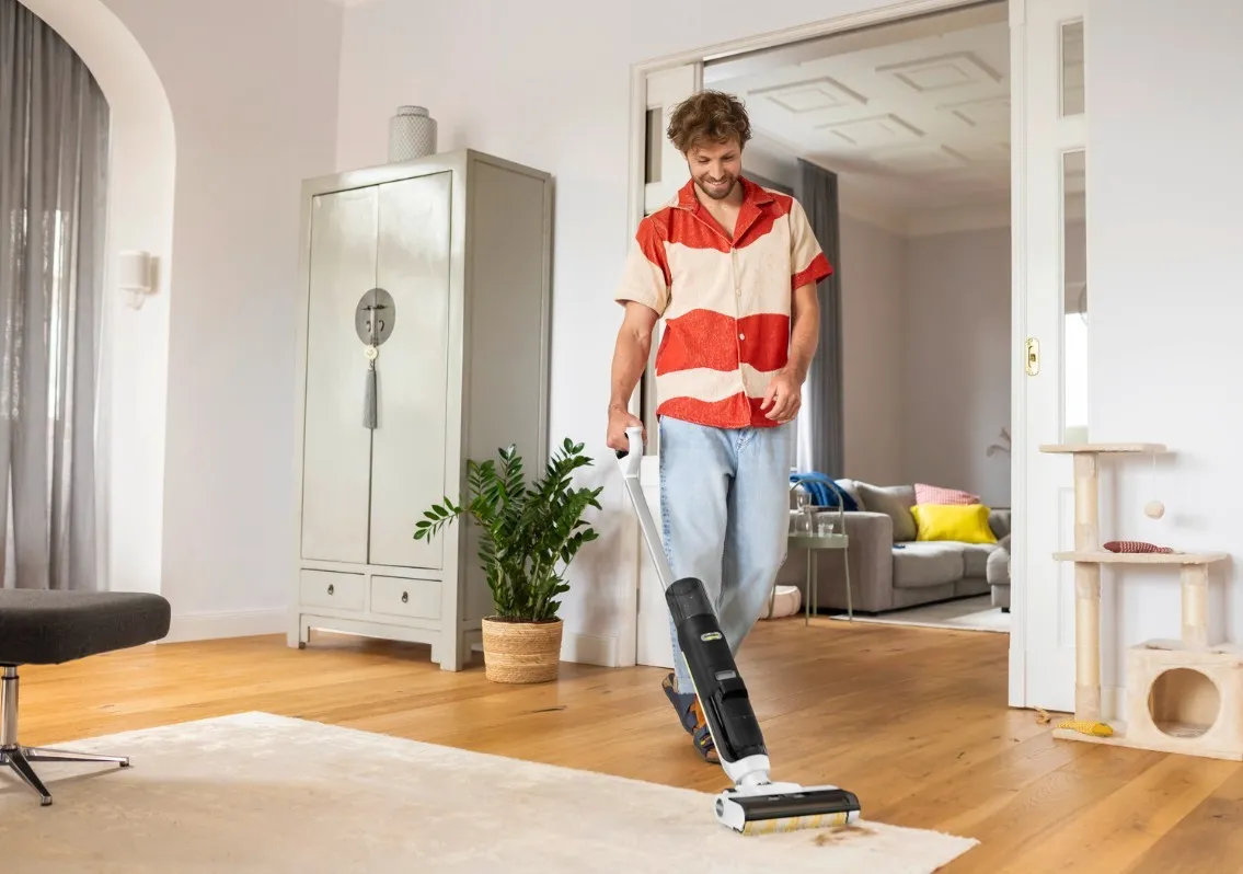 Skraca czas czyszczenia o połowę i gwarantuje perfekcyjną czystość! Dzięki zintegrowanej funkcji ssania, która eliminuje konieczność wcześniejszego odkurzania. Trzy tryby czyszczenia do każdego rodzaju zabrudzeń - nawet najbardziej uporczywy brud i największe rozlane płyny nie stanowią problemu. Dopasowuje się do różnych podłóg dla efektywnego i dokładnego czyszczenia aż po same krawędzie - także na dywanach i wykładzinach w trybie suchym.