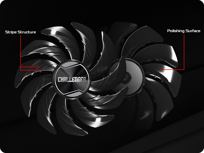 Karta została wyposażona w wydajny układ chłodzenia z wentylatorem, który skutecznie odprowadza ciepło nawet podczas najbardziej wymagających sesji. Dzięki temu Radeon RX 7600 Challenger OC zachowuje stabilność i wysoką kulturę pracy, niezależnie od intensywności obciążenia. Solidna konstrukcja i optymalny przepływ powietrza zapewniają nie tylko niskie temperatury, ale też cichą pracę. To chłodzenie stworzone po to, byś mógł skupić się na grze, a nie na hałasie.