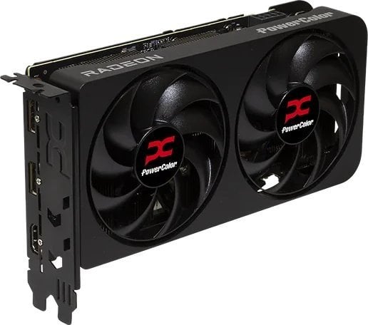 Za stabilną i cichą pracę karty odpowiada zaawansowany system chłodzenia z dwoma wydajnymi wentylatorami, które skutecznie odprowadzają ciepło nawet przy dużym obciążeniu. Dzięki temu karta zachowuje wysoką kulturę pracy, pozwalając na długie sesje gamingowe bez ryzyka przegrzania. Całość zamknięta została w eleganckiej, czarnej obudowie, która świetnie prezentuje się w każdej konfiguracji komputerowej. Gotowa na każdy zestaw PowerColor Radeon RX 9060 XT Reaper oferuje bogaty zestaw złączy: 1 x HDMI i 2 x DisplayPort, co umożliwia wygodne podłączenie kilku monitorów i korzystanie z technologii AMD Eyefinity dla panoramicznego obrazu. Karta wymaga zasilania 8-pinowego i zasilacza o mocy co najmniej 550 W. Zajmuje dwa sloty i ma kompaktowe wymiary (22 × 12 × 4 cm), dzięki czemu bez problemu zmieści się w większości obudów ATX.