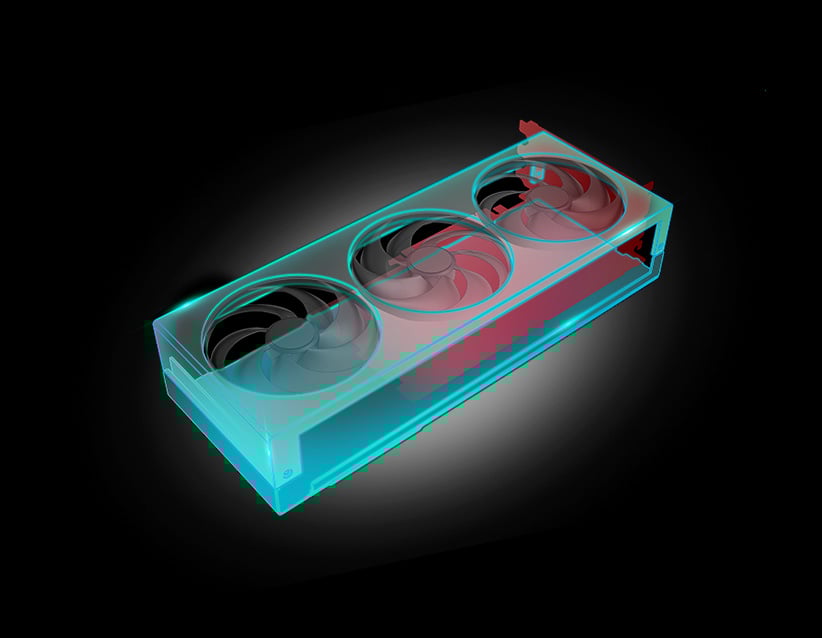 Karta została wyposażona w jednostki AI Compute, które analizują i optymalizują obraz w czasie rzeczywistym. Dzięki temu każda scena jest bardziej szczegółowa, a rozgrywka – płynniejsza. AI wspiera również ray tracing, poprawiając jakość oświetlenia bez utraty wydajności. Radeon RX 9070 XT to karta, która nie tylko dorównuje przyszłym wymaganiom gamingu – ona je przewiduje. Za stabilność i cichą pracę odpowiada zaawansowany system chłodzenia, zaprojektowany z myślą o długotrwałym obciążeniu. Udoskonalone wentylatory, zoptymalizowany rozkład ciepłowodów i wysoka efektywność przepływu powietrza gwarantują niskie temperatury i bezgłośną pracę nawet przy maksymalnej mocy.