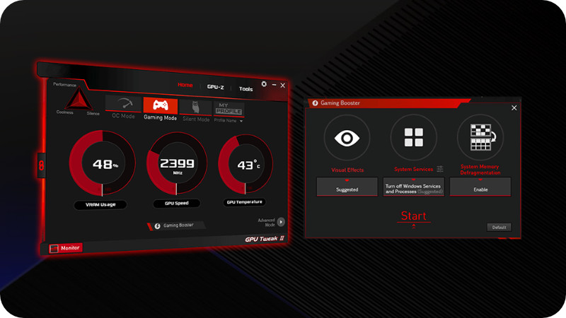 Aplikacja ASUS GPU Tweak II to dostrajanie karty graficznej na nowym poziomie. Z jej wykorzystaniem możesz kontrolować i dostrajać parametry pracy, takie jak taktowanie rdzenia, częstotliwości pracy pamięci oraz napięcia i wiele innych. W czasie rzeczywistym możesz monitorować wszystkie dane dzięki dostosowywanemu pulpitowi ekranowemu. Opracuj profil działania wentylatorów, który sprosta Twoim wymaganiom.