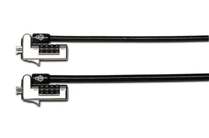 - Wyjątkowo gruby (6,5 mm), wyjątkowo mocny kabel ultra o długości 1,8 m jest wykonany ze stali węglowej, aby zapewnić najwyższy poziom ochrony przed próbami przecięcia. Odporna na ścinanie plastikowa tuleja kabla jest odporna na przecięcia i chroni powierzchnie.