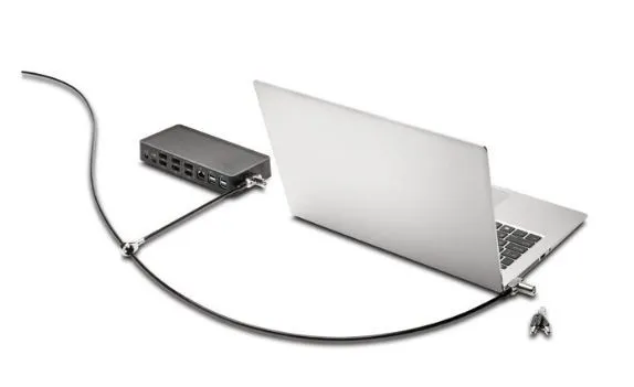 - Podwójne zamki umożliwiają zablokowanie dwóch urządzeń za pomocą jednego rozwiązania. Idealny do zabezpieczania wielu urządzeń, takich jak laptop, monitor lub stacja dokująca. Ułatwia zarządzanie kablami i kluczami oraz zmniejsza bałagan w kablach.