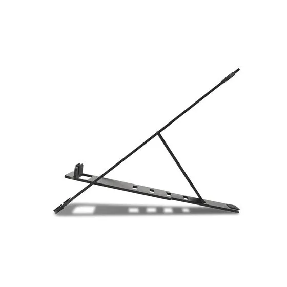 - Ultra-cienka, lekka konstrukcja składa się na płasko do podróży. Oszczędzająca miejsce podstawa łatwo dostosowuje się do różnych konfiguracji stacji roboczej.