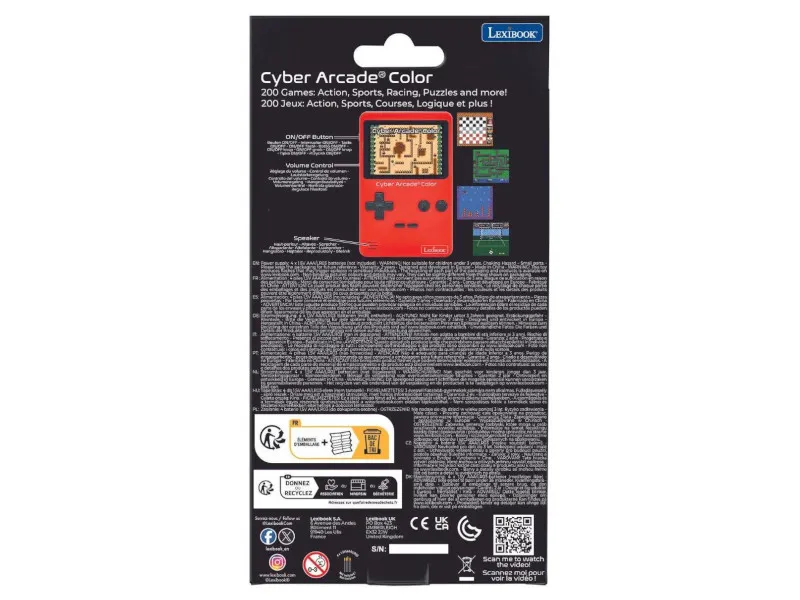 Lexibook Handheld Console Classic Cyber Arcade to przenośna konsola, która zapewnia godziny zabawy dzięki wbudowanemu zestawowi aż 200 gier. Kompaktowa konstrukcja i kolorowy ekran o przekątnej 2,8 cala sprawiają, że jest to idealny towarzysz zarówno w domu, jak i w podróży. Wciągające gry retro w różnych kategoriach, takich jak akcja, logiczne, sportowe czy przygodowe, dostarczą radości dzieciom i dorosłym. 200 wbudowanych gier zapewnia szeroką gamę klasycznych gier retro, idealnych dla miłośników nostalgicznych rozgrywek. Kolorowy ekran 2,8 cala oferuje wyraźny obraz, który poprawia wrażenia z gry. Kompaktowy i lekki design sprawia, że konsola jest wygodna w przenoszeniu i idealna do podróży. Zasilanie na baterie pozwala na wygodę i mobilność użytkowania. Przyjazne dla dzieci sterowanie oraz szeroka oferta gier są odpowiednie dla młodszych użytkowników. Zastosowanie Lexibook Classic Cyber Arcade to świetny wybór dla dzieci, które chcą poznać urok klasycznych gier wideo, jak i dla dorosłych pragnących wrócić do ulubionych tytułów z młodości. Dzięki prostocie obsługi i różnorodności gier, konsola zapewnia rozrywkę dla całej rodziny.