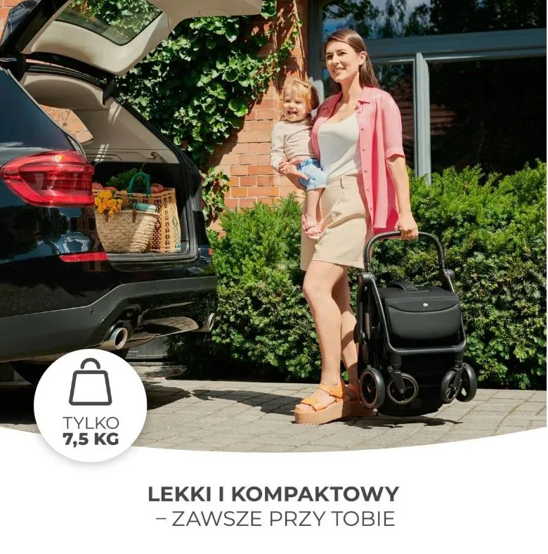 APINO jest bardzo lekkie, waży zaledwie 7,5 kg, co czyni z niego wózek idealny dla tych, którzy żyją w szybkim tempie. Bez trudu wniesiesz go po schodach, nawet trzymając w drugiej ręce malucha. Wystarczy ci jedna ręka by go złożyć i wejść do komunikacji miejskiej lub schować w bagażniku samochodu.