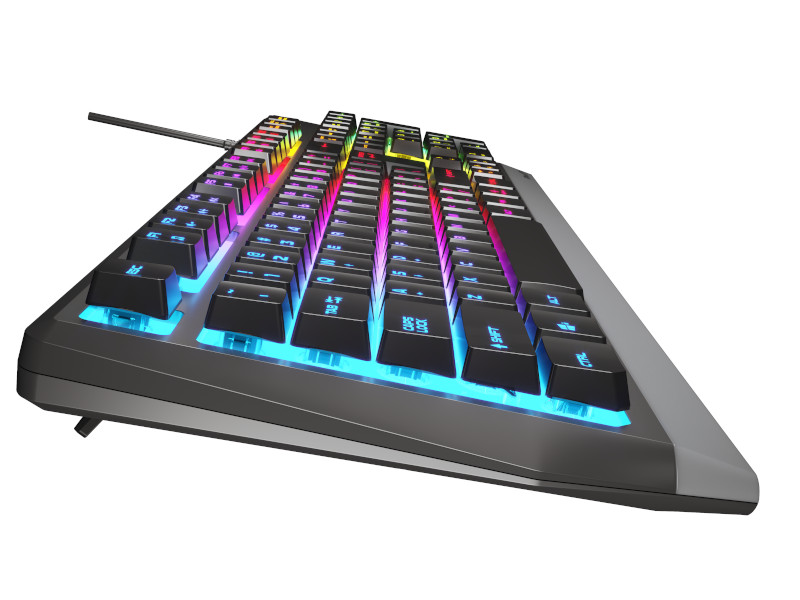 Klawiaturę wyposażono w zjawiskowe podświetlenie RGB, posiadające 11 trybów i pozwalające na zmianę szybkości oraz natężenia efektów. Dzięki temu w pełni dopasujesz urządzenie do swoich preferencji i całości swojego stanowiska. Dodatkowo, tryb użytkownika umożliwia wybranie jednego z ośmiu przedefiniowanych kolorów RGB do każdej z siedmiu stref klawiatury.