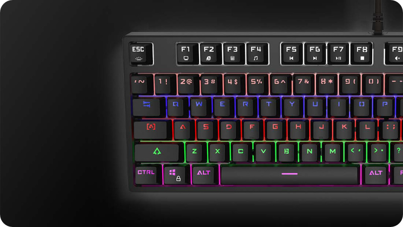 Delux KM13UM to klawiatura w rozmiarze 80%. Oznacza to brak bloku numerycznego po prawej stronie klawiatury. Jego wyeliminowanie przekładające się na mniejsze rozmiary klawiatury oznaczają, że prawa ręka zyskuje większy obszar do poruszania myszką podczas intensywnych rozgrywek. Dodatkowo ręce gracza mogą zostać bardziej zbliżone do siebie, pozwalając na bardziej naturalną pozycję siedzącą. Mniejszy rozmiar to również łatwiejszy transport, więc możesz cieszyć się bezkompromisowymi doznaniami gamingowymi również poza domem.