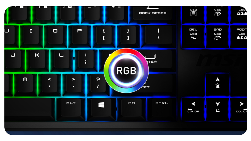 Zaprojektuj i spersonalizuj wygląd swojego zestawu komputerowego dzięki systemowi MSI Mystic Light oraz możliwości indywidualnej kontroli podświetlenia RGB każdego klawisza. Wybieraj spośród oszałamiających efektów świetlnych i 16 milionów barw. Dostosuj scenerię świetlną do poszczególnych klawiszy i ciesz się prawdziwie spersonalizowanymi wrażeniami. Dzięki dedykowanemu przyciskowi pozwalającemu na łatwe przełączanie efektów świetlnych oraz konfigurowalnym skrótom klawiszowym możesz szybko dostosować oświetlenie i polecenia do nastroju lub wykonywanego zadania.