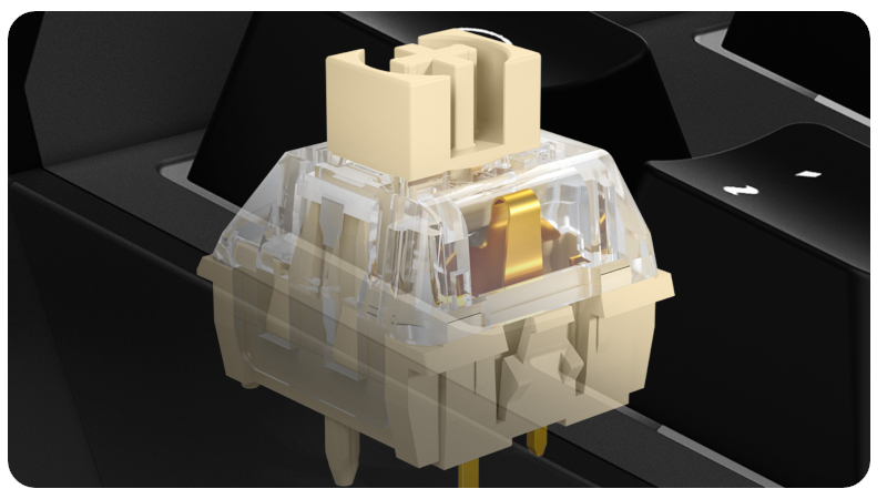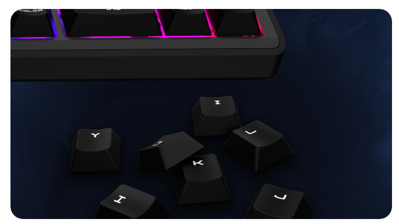 Klawiaturę wyposażono w charakteryzujące się wyjątkową trwałością oraz wysoką jakością nasadki klawiszy, które wykonano z politereftalanu butylenu (PBT), a symbole naniesiono na nie metodą sublimacji barwnika. Faktura powierzchni, przy każdym naciśnięciu klawisza, zapewnia solidne, dotykowe wrażenia, oferując idealną równowagę pomiędzy przyczepnością a gładkością. Co więcej, tworzywo PBT zachowuje wyraźne oznaczenia i jest odporne na zużycie, dzięki czemu każdy klawisz wygląda i działa tak samo dobrze, jak przy pierwszym użyciu.