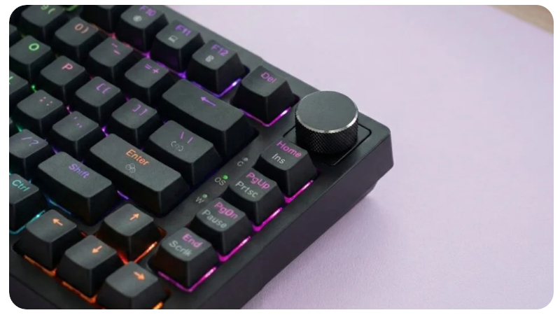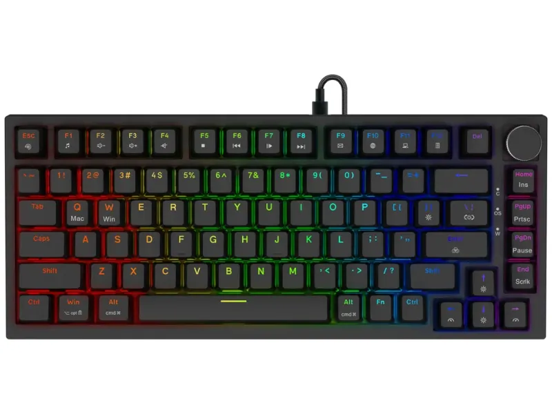 Wielofunkcyjne pokrętło Nakładki klawiszy z PBT Anti-Ghosting z pełnym N-Key Rollover Obsługa makr Kabel w oplocie |