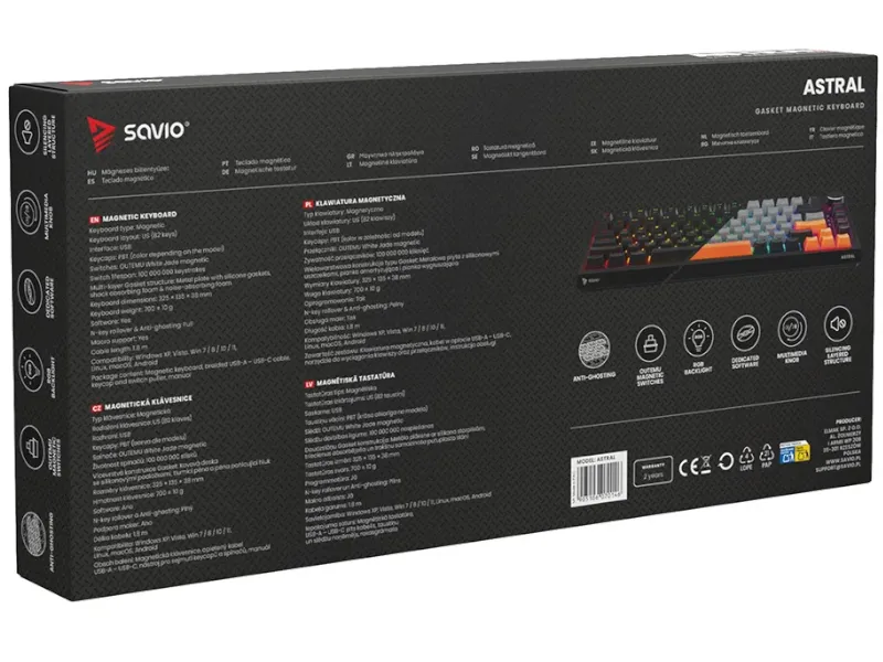 SAVIO ASTRAL Black, Klawiatura magnetyczna, OUTEMU White Jade, RGB