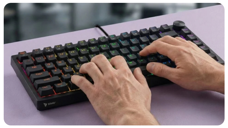Zapomnij o śliskich, błyszczących klawiszach pełnych odcisków palców. ASTRAL została wyposażona w keycapy z wytrzymałego tworzywa PBT, które przewyższa standardowy ABS pod każdym względem. Ten wyjątkowo twardy i odporny materiał zachowuje swoją fakturę oraz kolor nawet po tysiącach godzin intensywnego użytkowania. Efekt? Klawisze, które nie wycierają się, nie żółkną i zawsze wyglądają jak nowe – dokładnie tak, jak Twoja klawiatura powinna prezentować się każdego dnia.