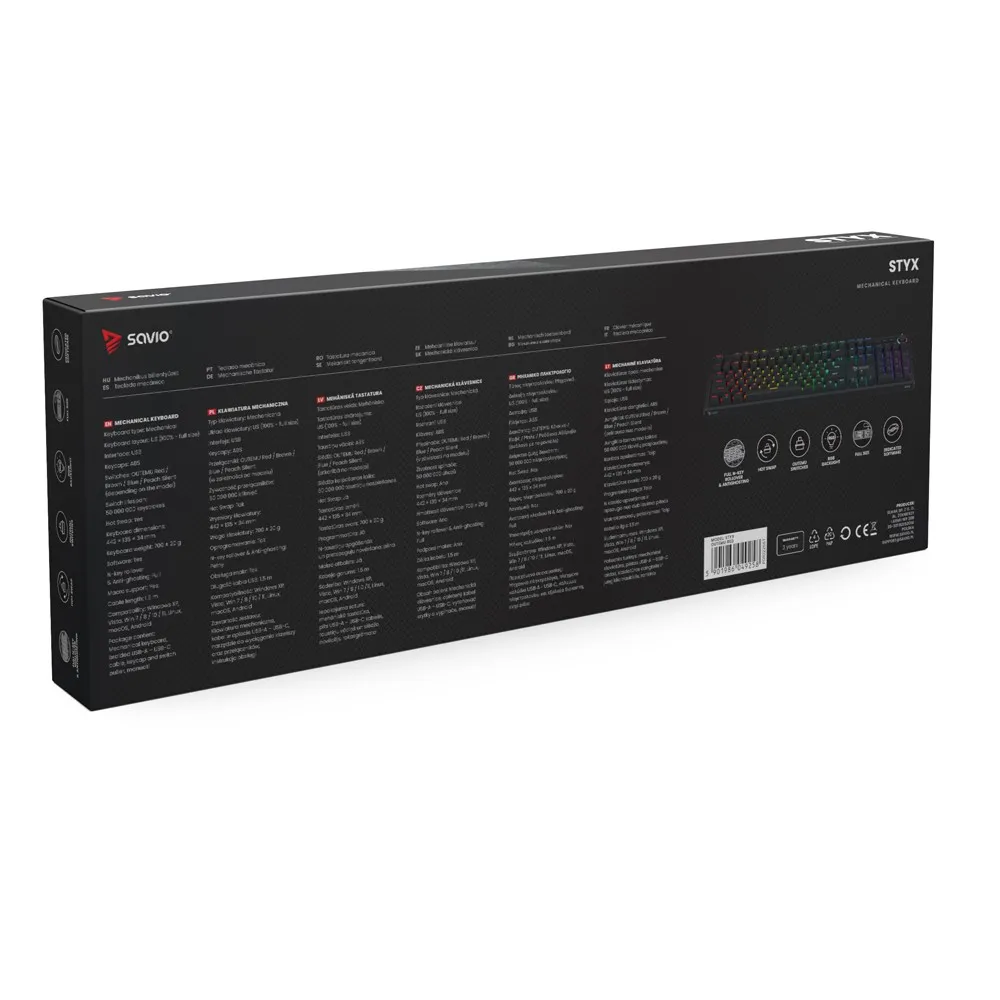 Klawiatura Savio STYX to model przewodowy o długości kabla 1,5 m, zaprojektowany w klasycznym, eleganckim stylu i kolorze czarnym. Dzięki połączeniu wysokiej jakości wykonania, ergonomicznego designu i nowoczesnych funkcji, stanowi doskonały wybór dla graczy, twórców i wszystkich, którzy oczekują wydajności bez kompromisów.
