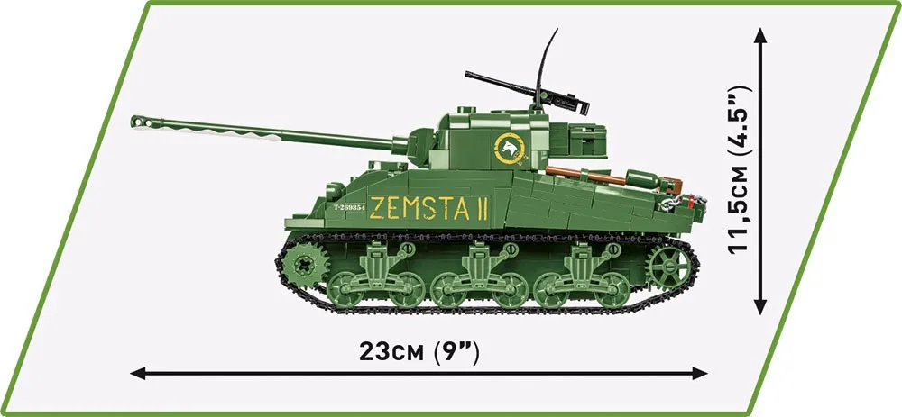 Sherman IC Firefly Hybrid Sherman Firefly to brytyjska modyfikacja najpopularniejszego czołgu amerykańskiego z okresu drugiej wojny światowej. Brytyjczycy zastosowali w nim swoją 17 funtową armatę. Symbol "IC" oznacza z kolei wariant z odlewanym pancerzem przednim i spawanym tyłem. Była to bardzo udana konstrukcja, która pojawiła się na froncie zachodnim w połowie 1944 roku. Model COBI otrzymał oryginalne oznaczenia Polskich Sił Zbrojnych, walczących u boku Aliantów oraz historyczną nazwę własną "ZEMSTA II". Czołg został opracowany w skali 1:35 pasującej do figurek i składa się z 600 klocków konstrukcyjnych. Funkcjonalności modelu to: otwierany właz, dostęp do klockowej atrapy silnika, obracająca się wieża, ruchome działo i działająca trakcja gąsienicowa. Wszystkie elementy graficzne to wysokiej jakości nadruki. W zestawie nie ma naklejek! W pudełku znajduje się również tabliczka z nadrukowaną nazwą czołgu. Ważnym elementem zestawu jest bardzo starannie opracowana figurka generała! Generał Władysław Anders (1892-1970), polski generał i polityk. We wrześniu 1939 roku walczył z oddziałami niemieckimi i radzieckimi. Trafił do rosyjskiej niewoli. Dowódca Armii Polskiej w ZSRR i II Korpusu Polskiego. Po wojnie w Londynie w latach 1946-1954 Naczelny Wódz i Generalny Inspektor Polskich Sił Zbrojnych RP oraz następca prezydenta Rzeczypospolitej Polskiej na uchodźstwie. Zmarł w 1970 roku. Został pochowany ze swoimi żołnierzami na Polskim Cmentarzu Wojennym na Monte Cassino. Sherman Firefly wraz z figurką generała Władysława Andersa to pozycja obowiązkowa dla pasjonatów historii, broni pancernej oraz przepiękny model do kolekcji poświęconej drugiej wojnie światowej. Nasza kolekcja w skali 1:35 nie może się obyć bez tego zestawu! Zbuduj historię, klocek po klocku!