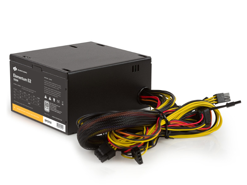 Zasilacz SilentiumPC Elementum 80+ EU 550 W to nowoczesna platforma. Zapewnia bardzo dobrą stabilność napięć, a także wysoką sprawność energetyczną przekraczającą 80%, co zostało potwierdzone certyfikatem 80 PLUS EU. Oznacza to mniej generowanego ciepła, co pozwala na wykorzystanie wolnoobrotowego wentylatora, który zapewnia cichą pracę.