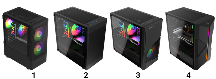 - 2) Krux Cella (ze szkłem hartowanym, 2 wentylatory ARGB 120mm z pilotem zdalnego sterowania)