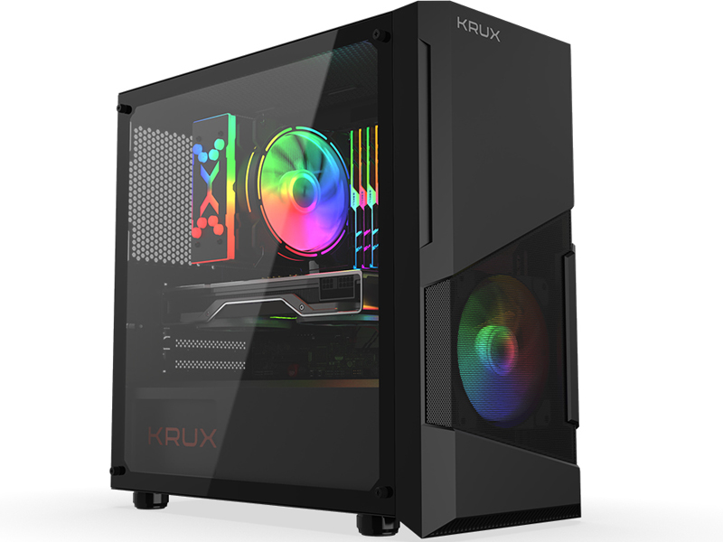 - 2) Krux Cella (ze szkłem hartowanym, 2 wentylatory ARGB 120mm z pilotem zdalnego sterowania)
