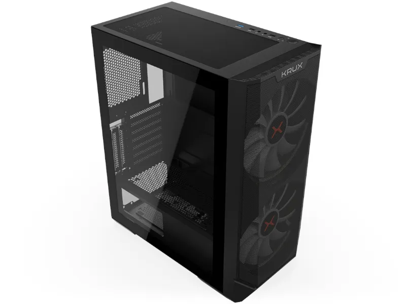Nadaj swojemu desktopowi wyjątkowy charakter z czarną obudową KRUX Vortex, która łączy agresywny, gamingowy design z eleganckim przeszklonym panelem bocznym i efektownym podświetleniem LED. Dzięki niej możesz z dumą zaprezentować swoją konfigurację – każdy komponent będzie lśnić w wielokolorowej poświacie, tworząc niepowtarzalny klimat rozgrywki. Wnętrze KRUX Vortex to przestrzeń zaprojektowana z myślą o wydajności – bez problemu pomieści wszystkie kluczowe podzespoły, a fabryczny system chłodzenia zadba o optymalny przepływ powietrza, utrzymując temperatury pod pełną kontrolą. Styl, moc i funkcjonalność – wszystko w jednym!