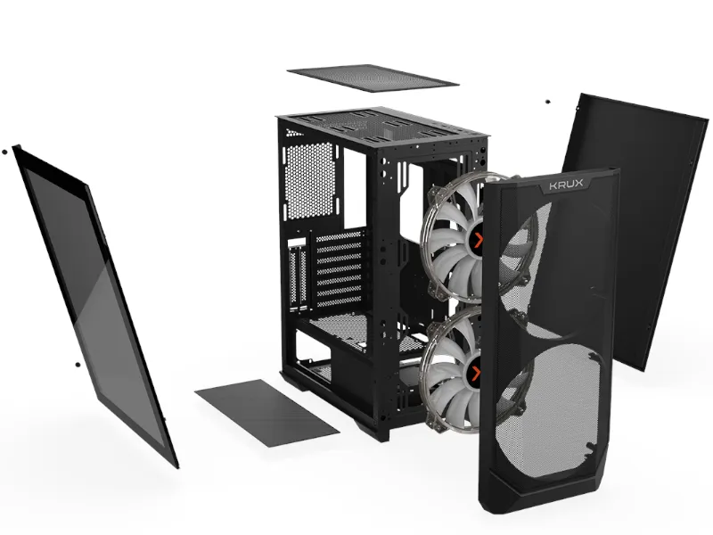Już w standardzie KRUX Vortex oferuje dwa fabrycznie zainstalowane wentylatory, które dbają o skuteczny i równomierny przepływ powietrza wokół wszystkich kluczowych komponentów. Ale to dopiero początek – obudowa umożliwia montaż aż 8 wentylatorów lub radiatorów chłodzenia wodnego o długości do 360 mm, dzięki czemu bez trudu stworzysz system chłodzenia dopasowany do własnych potrzeb. Dodatkowo, łatwe w demontażu filtry przeciwkurzowe chronią wnętrze przed zanieczyszczeniami i sprawiają, że utrzymanie perfekcyjnej czystości jest szybkie i bezproblemowe. KRUX Vortex to idealne połączenie wydajności, funkcjonalności i elegancji – gotowe na każdy poziom gamingowego wyzwania.