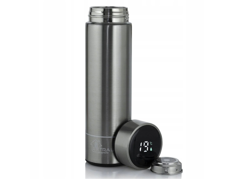 Praktyczny i wygodny kubek termiczny od Extralink. To co wyróżnia produkt Extralink na tle innych produktów to wyświetlacz LED, dzięki któremu użytkownik ma możliwość monitorowania temperatury przechowywanego napoju według jego preferencji. za sprawą wbudowanemu czujnikowi termicznemu i wyświetlaczowi masz możliwość śledzenia dokładnych danych dotyczących Twojej wody. Dodatkowo sprzęt cechuje się lekką i kompaktową budową. Z kolei podwójne ścianki wykonane ze Stali nierdzewnej sprawiają, że wnętrze jest bezpieczne. Urządzenie utrzymuje ciepło przez bardzo długi czas.