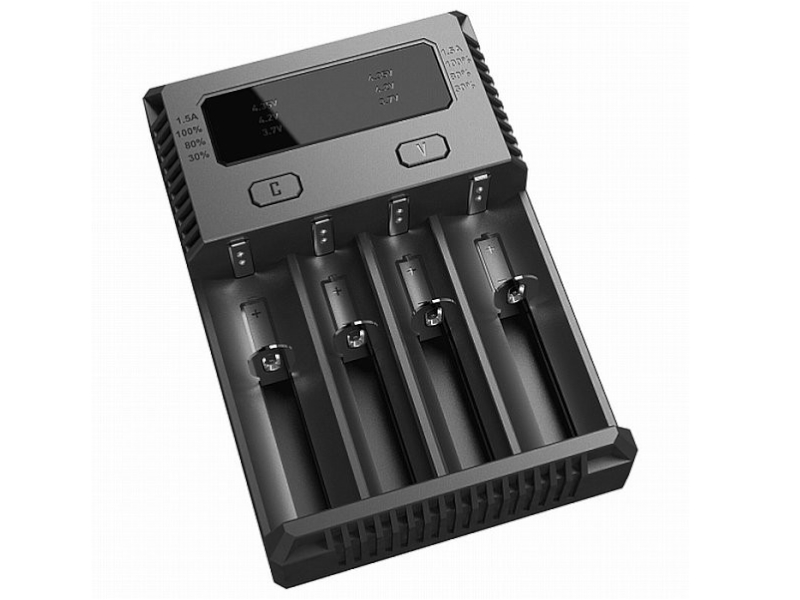 Nitecore New Intellicharger I4 to nowoczesna czterokanałowa ładowarka przeznaczona do ładowania akumulatorów Li-Ion, LiFePO4 oraz NiMH. Urządzenie ładuje akumulatory Li-Ion zarówno o napięciu 3,7V jak i 3,8V. Dodatkowo ładowarka pozwala na manualny dobór prądu i napięcia ładowania w zależności od włożonego do środka akumulatora.