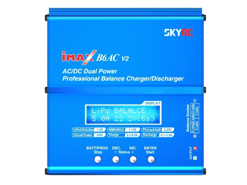 Profesjonalna ładowarka/rozładowywarka iMax B6AC V2 to unowocześniona i udoskonalona wersja ładowarki iMax B6AC. W prowównaniu z poprzednim modelem, B6AC V2 zyskał nowe funkcje. Teraz użytkownicy mogą decydować o wartości napięcia końcowego ładowania. B6AC V2 posiada możliwość obsługi i aktualizacji oprogramowania po podłączeniu do komputera.