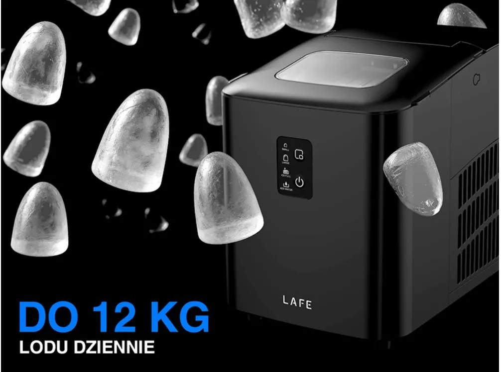 Mimo niewielkich gabarytów, Lafe Ice Cube Maker potrafi wyprodukować nawet do 12 kg lodu na dobę. To wystarczająco dużo, aby sprostać potrzebom całej rodziny, gości lub małego biura.