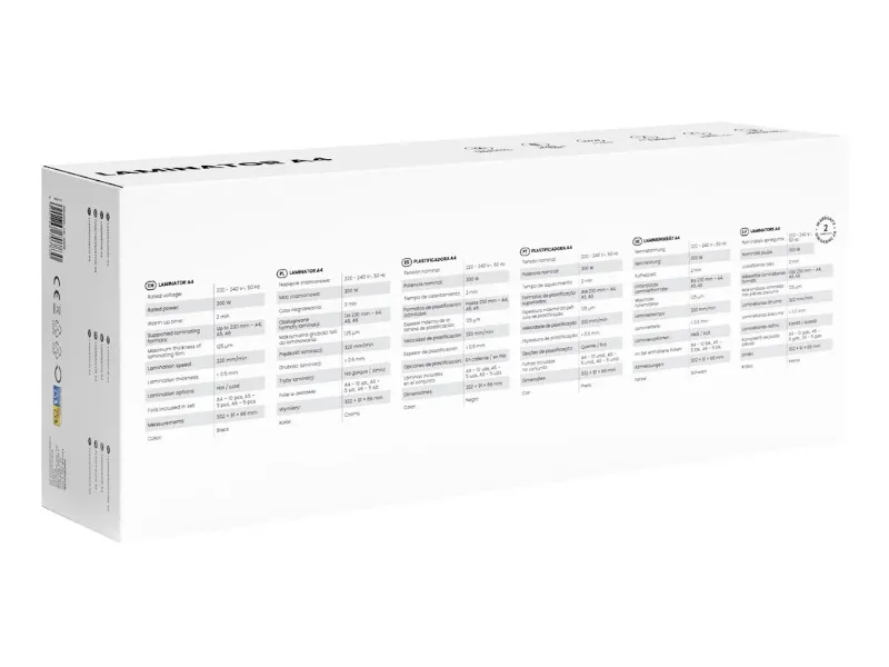 Funkcja Fast Lamination z prędkością 320 mm/min pozwala zalaminować kartkę A4 w mniej niż minutę, bez pęcherzyków powietrza i nierówności. W zestawie znajduje się 20 folii startowych (A4, A5 i A6), dzięki czemu możesz rozpocząć pracę od razu po wyjęciu urządzenia z pudełka. Smukła obudowa sprawia, że laminator zajmuje niewiele miejsca na biurku i łatwo go przechować..