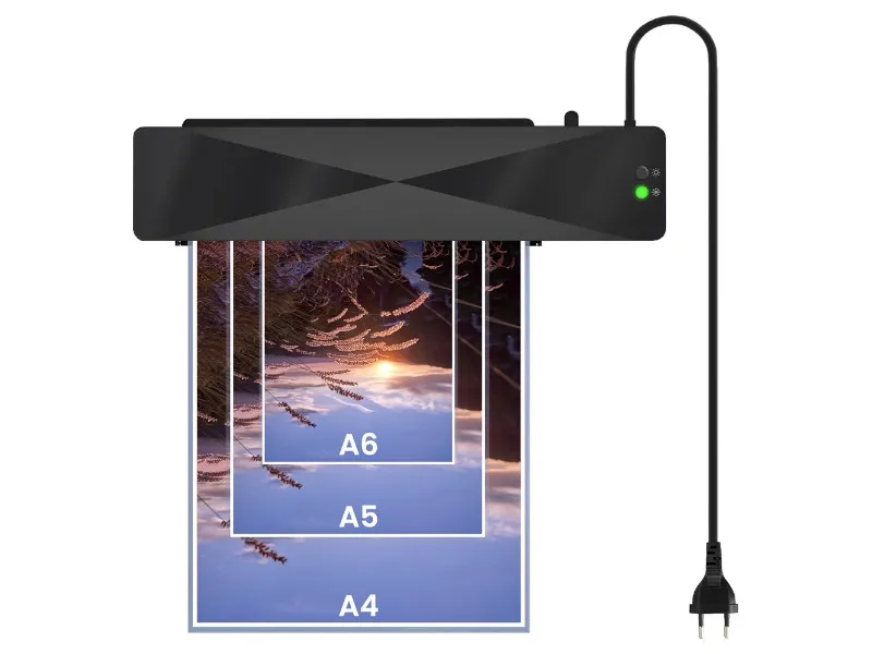 Laminacja na gorąco zapewnia trwałe zgrzanie folii z papierem, a tryb na zimno działa poprzez precyzyjny docisk rolek. Dzięki mocy 300 W laminator pracuje stabilnie i pozwala na użycie folii o grubości do 125 μm, zapewniając doskonałe usztywnienie dokumentów. Krótki czas nagrzewania – tylko 2 minuty – sprawia, że urządzenie jest gotowe do pracy niemal natychmiast. Szerokość wejścia do 230 mm umożliwia laminowanie dokumentów w formatach A4, A5 i A6, od dyplomów i certyfikatów po identyfikatory czy wizytówki.