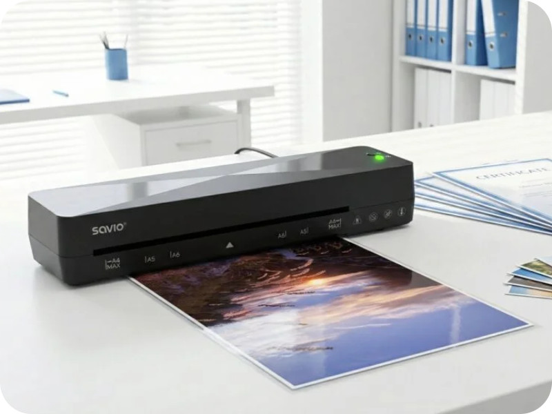 Zabezpiecz ważne dokumenty przed wilgocią, zabrudzeniami i upływem czasu. Laminator A4 Savio LR-01/B to kompaktowe, wydajne i łatwe w obsłudze urządzenie, które nadaje dokumentom elegancki wygląd oraz zwiększa ich trwałość. Idealnie sprawdzi się w domu, biurze i szkole. Urządzenie obsługuje laminację na gorąco i na zimno, dzięki czemu możesz bezpiecznie zabezpieczać zarówno standardowe dokumenty, jak i materiały wrażliwe na wysoką temperaturę, takie jak stare zdjęcia czy paragony.