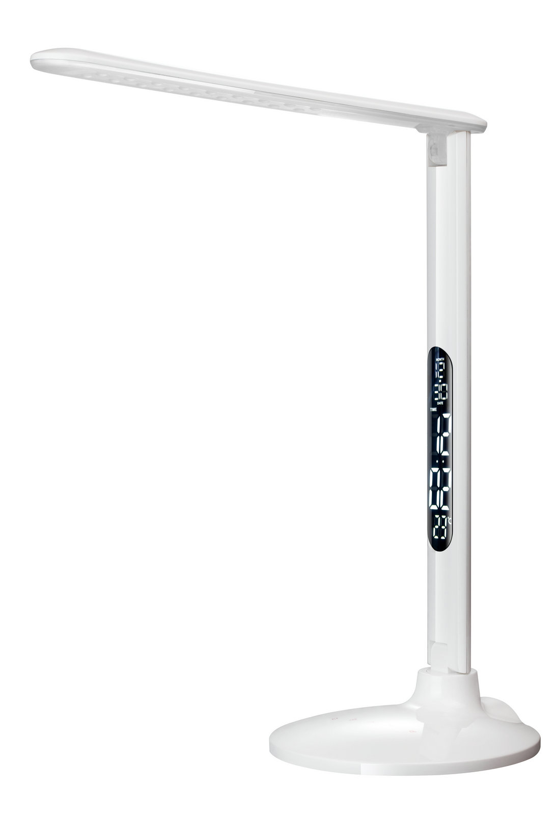 - Lampka biurkowa LED z funkcją zegara, kalendarza i termometru, portem USB 5V