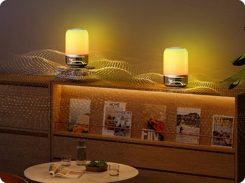 Wyposażona w 210 wysokiej jakości diod LED zapewniających ostre i dynamiczne efekty wizualne, lampa oferuje ponad 100 konfigurowalnych scen, aby stworzyć idealny nastrój. 16 trybów reagujących na muzykę reaguje na dźwięk w zaledwie 32 ms, dzięki czemu światło nadąża za każdym rytmem. Wbudowana bateria 5200 mAh umożliwia do 4,5 godzin bezprzewodowego światła i dźwięku w dowolnym miejscu. Funkcja wybudzania dotykiem, dwa interfejsy typu C i obsługa parowania stereo sprawiają, że jest to urządzenie równie wszechstronne, co stylowe. Dodatkowo, możesz w pełni spersonalizować efekty świetlne dzięki 210 punktom DIY, co daje nieograniczone możliwości kreatywnego projektowania.