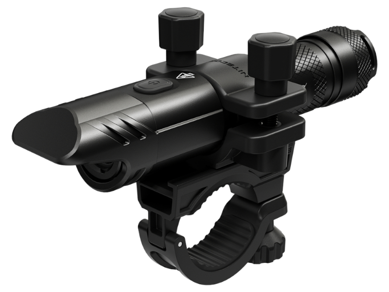 Obudowę lampki rowerowej Nitecore BR25 wykonano z aluminium lotniczego i pokryto specjalną czarną powłoką, która jest odporna na wszelkiego rodzaju obicia i zarysowania. Co najważniejsze urządzenie spełnia standardy IP68, dzięki czemu niestraszny jej kurz i zalanie. Urządzenie zasilane jest za pomocą akumulatora 21700 o pojemności 5000 mAh (w zestawie), co pozwala na 60 godzin ciągłej pracy. Dodatkowo lampkę możesz zasilić przez akumulator 18650, 2xCR123 lub 2xRCR123 (brak w zestawie). Nie zapomniano również o bezpieczeństwie. Jej zaawansowany układ elektroniczny odpowiada za pobór prądu, a przed przegrzaniem diody w najwyższym trybie pracy chroni system ATR. W zestawie znajdziesz specjalny montaż rowerowy z mechanizmem szybkiego wypinania, a tubus o średnicy 25,4 mm umożliwia zastosowanie innych rozwiązań montaży.