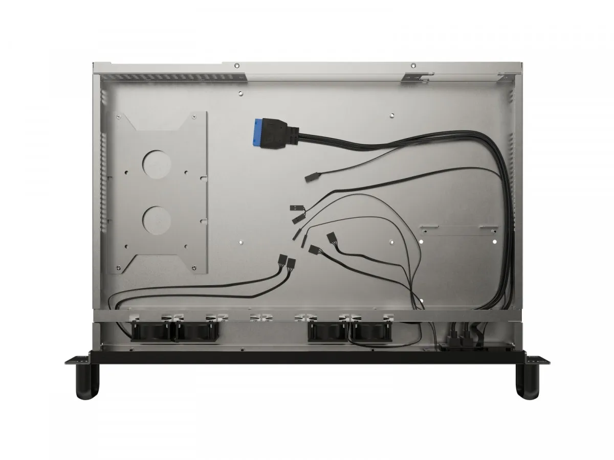 SC01-3001-10B zawiera rozdzielacz 4-PIN PWM umożliwiający podpięcie kilku wentylatorów i precyzyjne sterowanie ich pracą, komplet śrub M6 zapewniajacy stabilny montaż w standardowej szafie RACK, wymienny przedni filtr przeciwkurzowy chroniący wnętrze przed zabrudzeniami oraz uchwyty pod zasilacz FLEX o długości do 200 mm, które zapewniają kompatybilność z szeroką gamą jednostek zasilających. Takie wyposażenie eliminuje potrzebę dokupowania dodatkowych akcesoriów i pozwala na sprawny, bezpieczny montaż całego serwera w ciągu kilku minut.