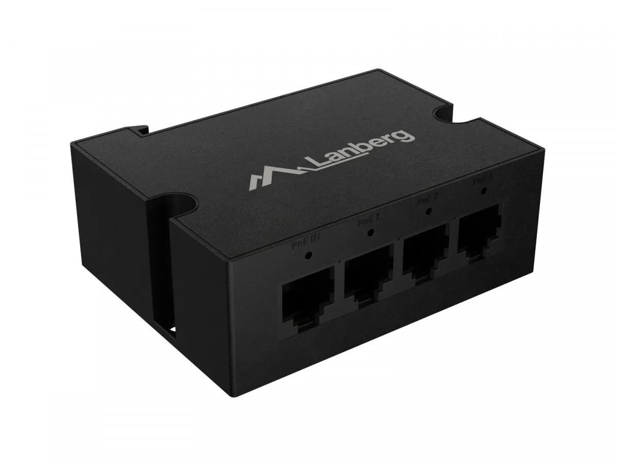 - 4-portowy układ RJ45: 1x port wejściowy + 3 porty wyjściowe PoE (idealne, gdy trzeba dodać "odnogę" w instalacji).