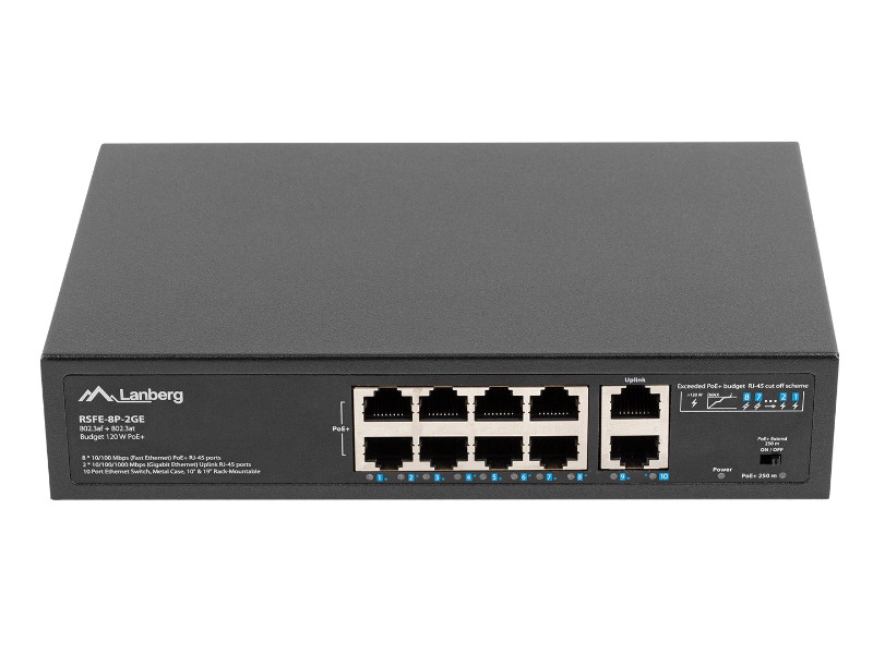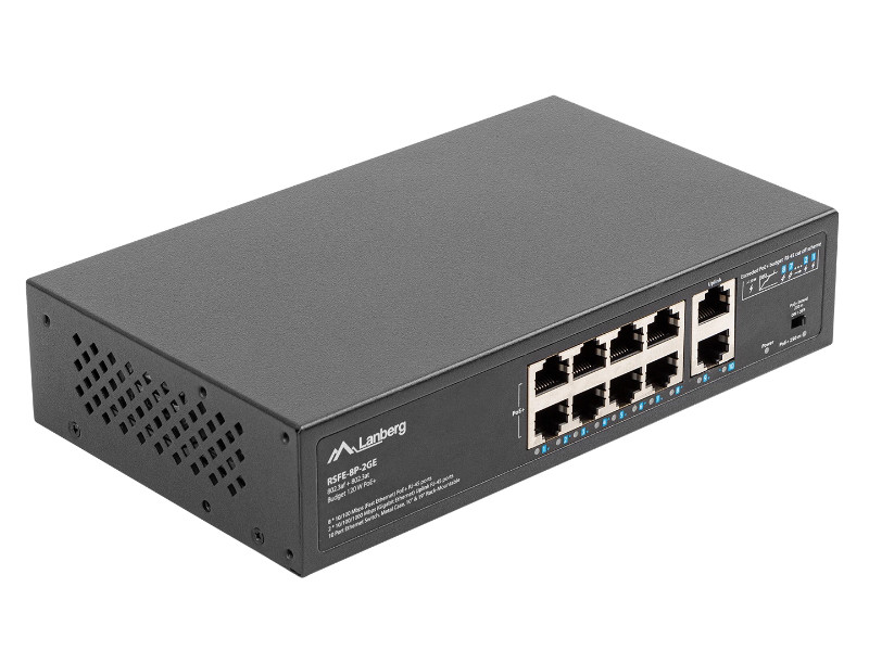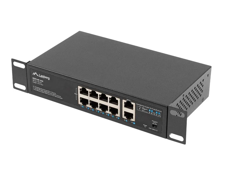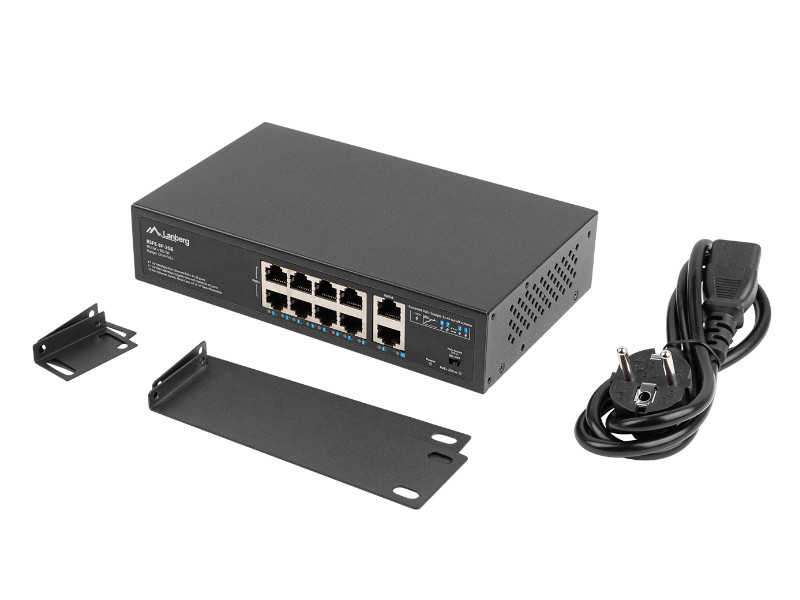 Przełącznik PoE Lanberg jest nieodzownym urządzeniej aktywnym w strukturze sieciowej wykorzystującej transmisję zasilania przez okablowanie strukturalne. Jest dedykowany do instalacji domowych, firmowych, minitoringowych, i wielu innych. Oprócz funkcji przełącznika zapewnia także zasilanie każdego urządzenia w standardzie PoE/PoE+ - 802.3af oraz at. Umożliwia to dostarczenie do urządzeń mocy nawet 60W, jednocześnie obsługując transmisję danych. Switch został wyposażony w 6 portów. 4 z nich to PoE+ (Fast Ethernet), a dwa pozostałe to Uplink (Fast Ethernet).