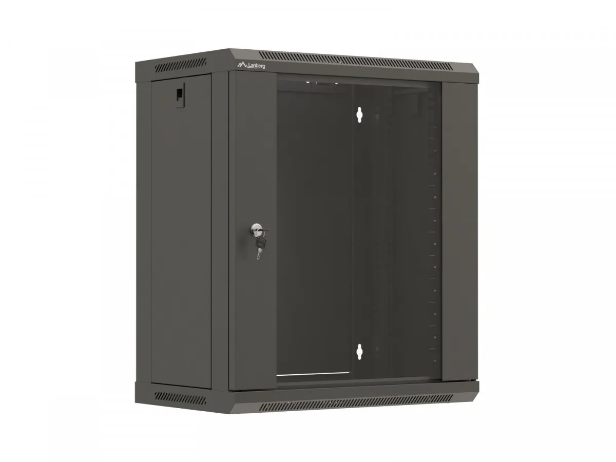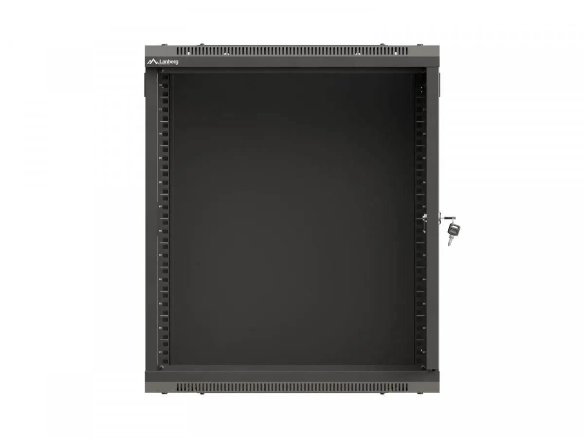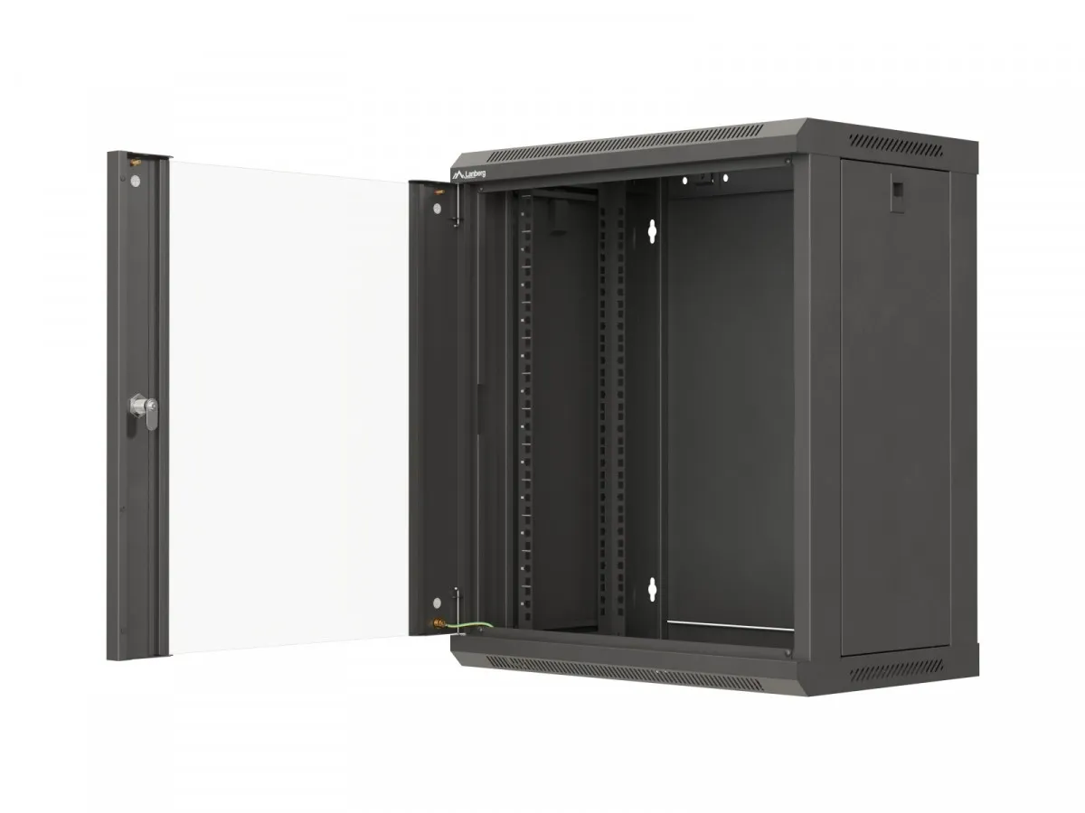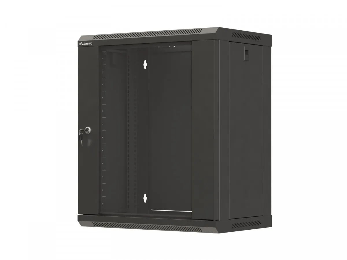 Lanberg Szafa instalacyjna rack wisząca 19 cali 12U 540x350 czarna drzwi przeszklone (flat pack)