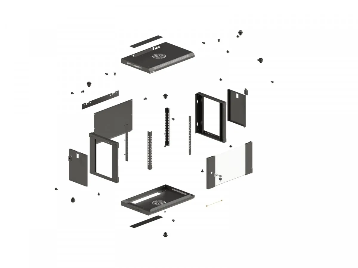 Przeszklone drzwi z przodu oraz dostęp z boków i tyłu szafy przez zdejmowane panele boczne oraz zdejmowany panel tylny oznaczają zarówno wysoką funkcjonalność, jak i zabezpieczenie urządzeń przed przypadkowym wyłączeniem czy uszkodzeniem. Dodatkowo istnieje możliwość montażu szafy bezpośrednio na ścianie (przez otwory w ramie) lub za pomocą specjalnej listwy, co znacznie ułatwia instalację w różnych warunkach.